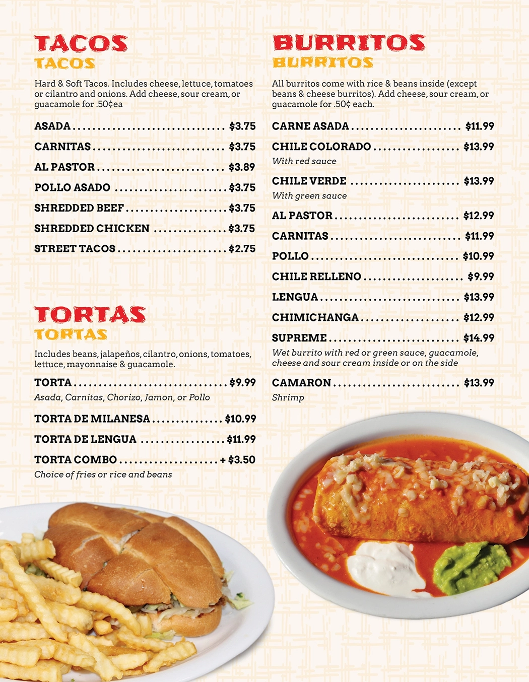 Our menu is packed with authentic Mexican favorites made fresh every day